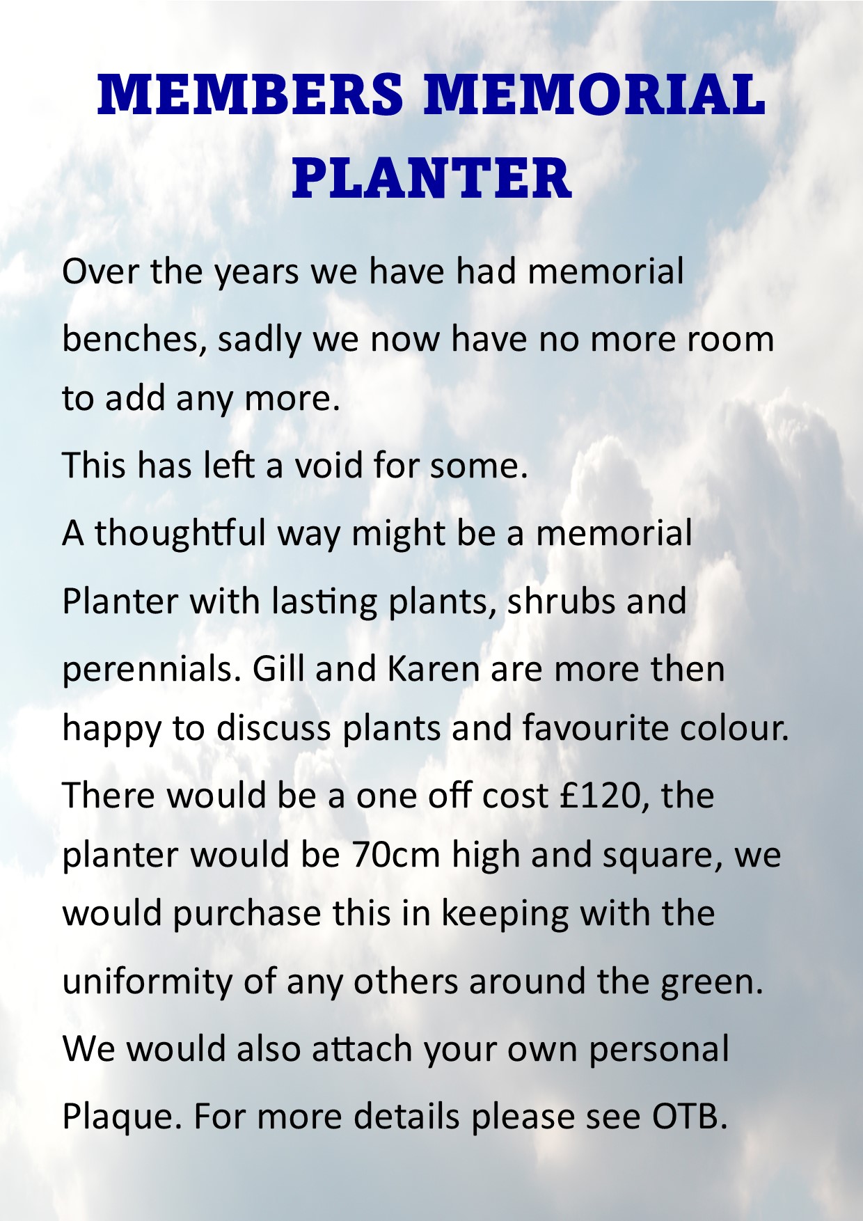 refreshments and use of the Club house.